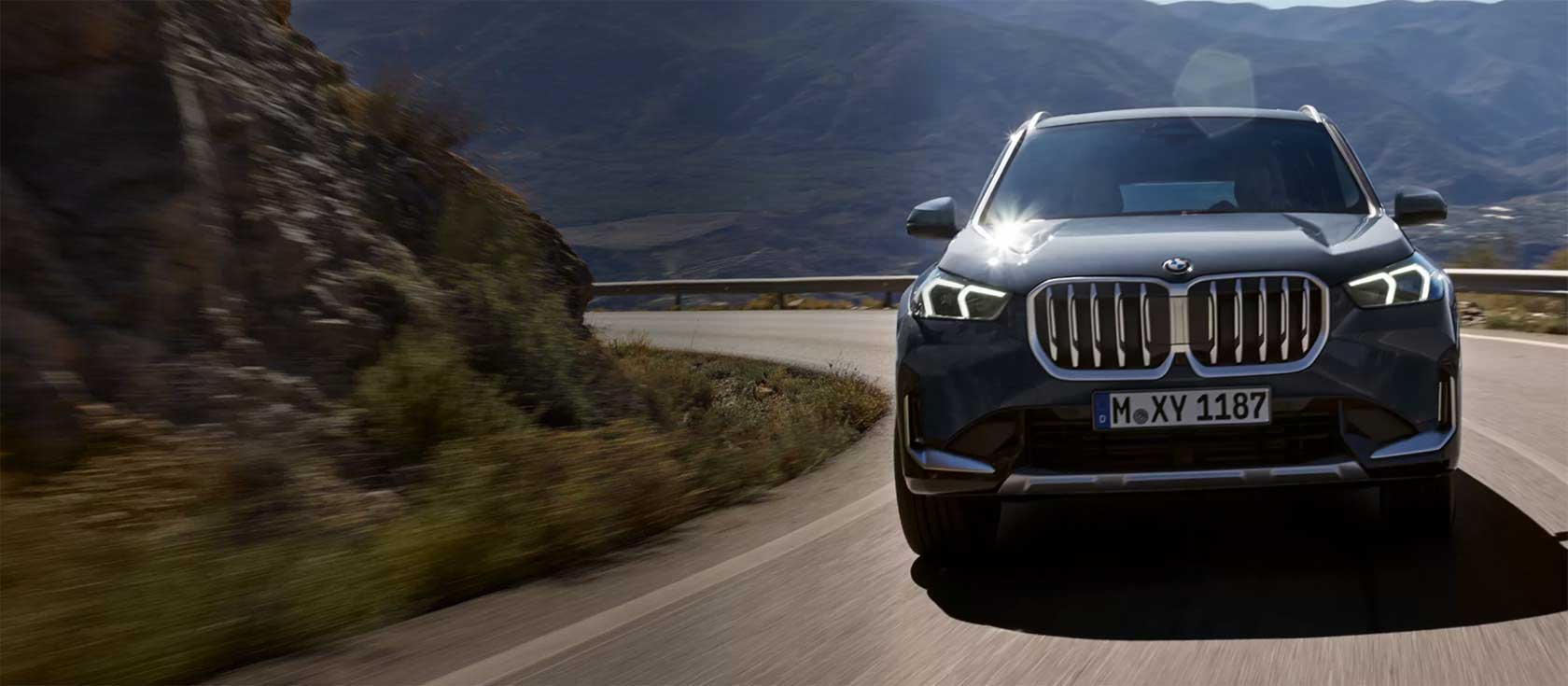 Η μεγάλη, σχεδόν ορθογώνια διπλή μάσκα «νεφρών» βρίσκεται στη μέση. Σε συνδυασμό με τους λεπτούς προσαρμοζόμενους προβολείς LED που εκτείνονται μέχρι τα πλάγια, η BMW X1 διαθέτει δυναμική και γεμάτη αυτοπεποίθηση παρουσία.